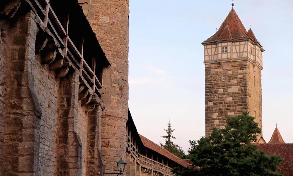 Rothenburg was surrounded by an impressive city wall with six city gates, and its citizens defended their home with crossbows and later firearms. The gates were closed at nightfall, and the ringing of bells signaled the “curfew” to call the citizens back into the city. Those who arrived late had to pass through the “Mannloch” (manhole) and pay a fine. The city successfully withstood many enemies until it was eventually conquered during the Thirty Years’ War.