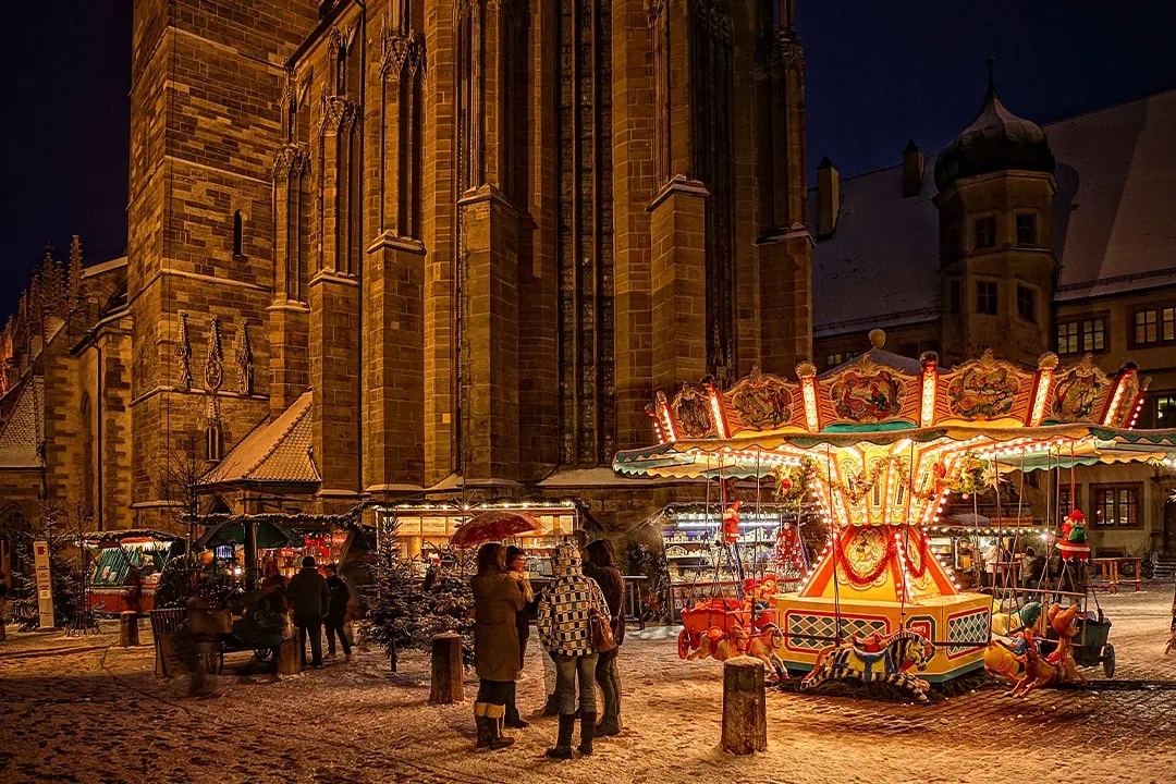 The Old Town of Rothenburg provides the perfect backdrop for the Reiterlesmarkt. Surrounded by festively adorned half-timbered houses, the scent of cinnamon, mulled wine, and roasted almonds fills the air. In the lovingly crafted wooden huts, you’ll find handmade gifts, intricate Christmas decorations, and regional delicacies.