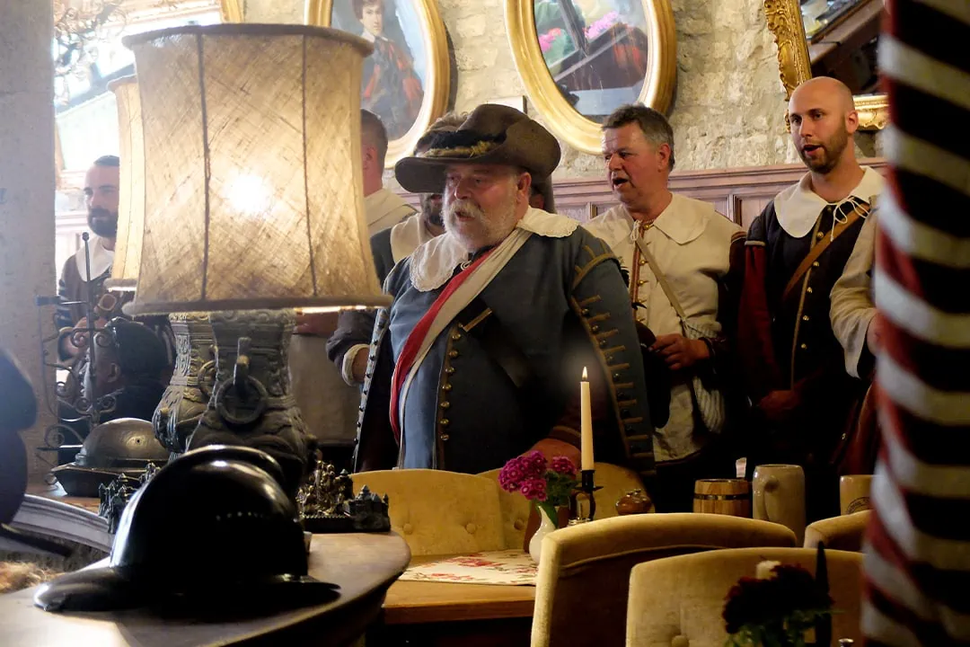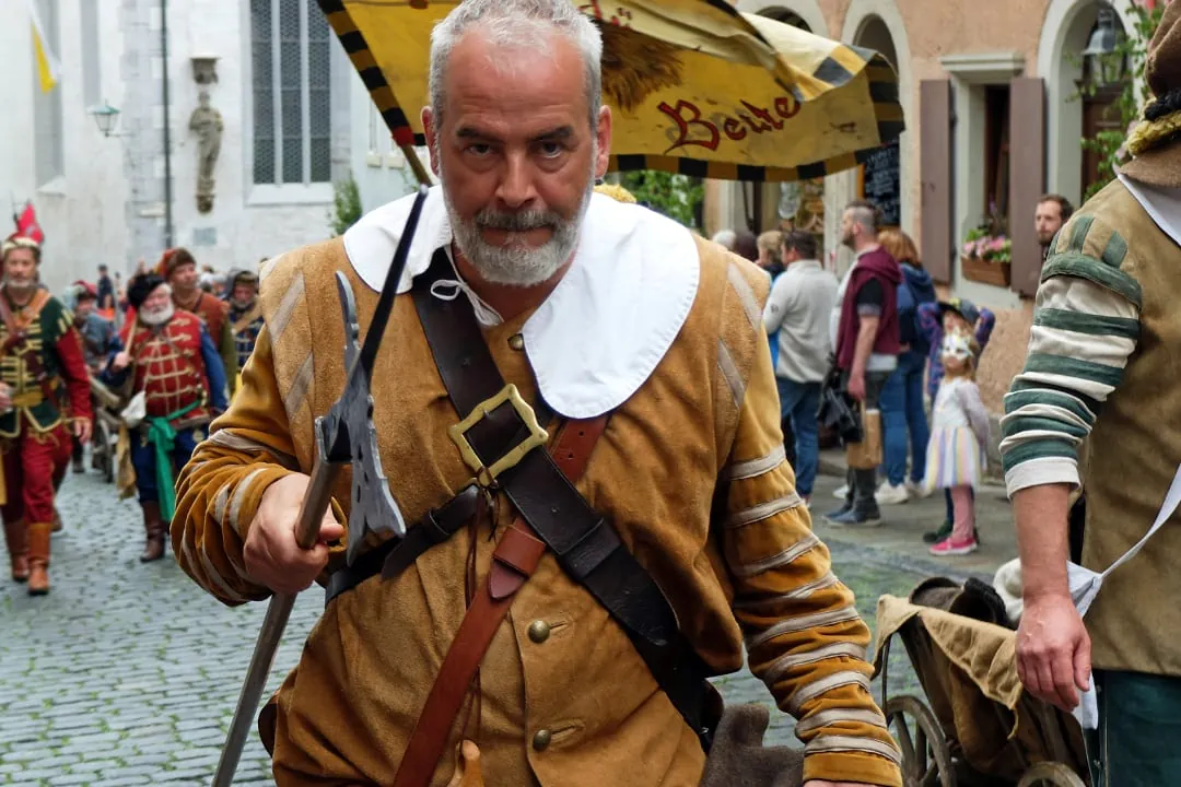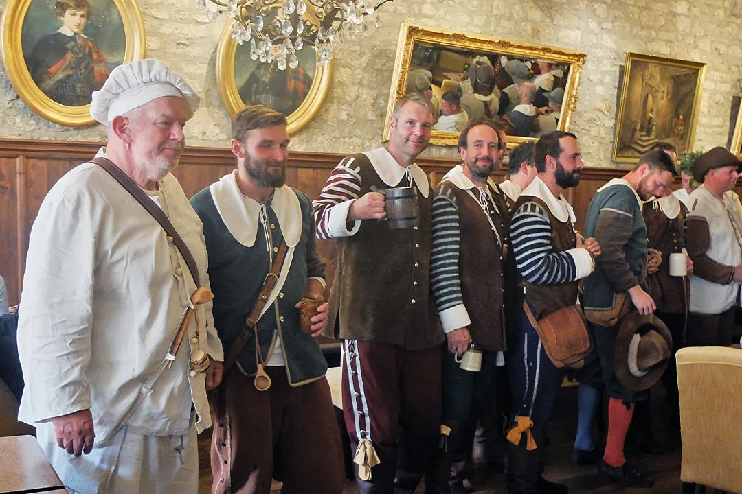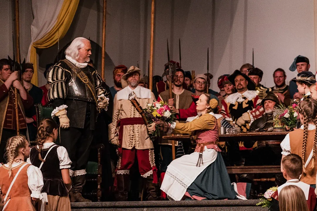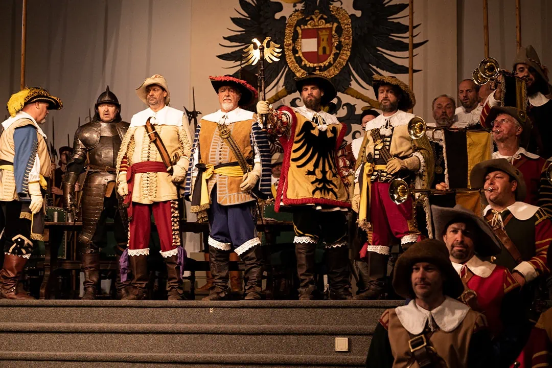 The festival play “The Master Draught” takes you on a breathtaking journey to the year 1631, in the middle of the Thirty Years’ War. When the town was besieged by imperial troops and the situation seemed hopeless, the people of Rothenburg made a courageous move. Mayor Georg Nusch proposed a bold agreement to the besieging General Tilly. If he managed to empty a huge cup of wine in one go, he would spare the town. The challenge was accepted, and when the cup was empty, the city was saved.