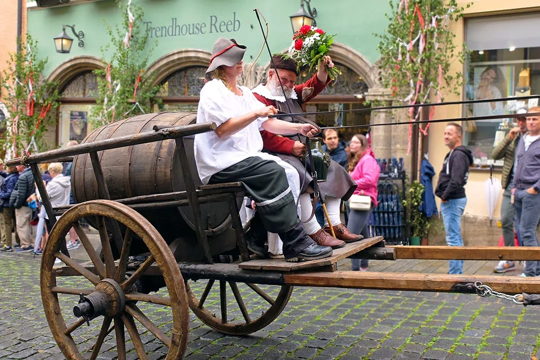 This festival play and its epic legend of the “Master Draught” catapults you straight into the 17th century. Magnificent costumes, rousing music and talented actors breathe life into this historical episode. Here you will not only experience the heroic act of the mayor, but also the deep bond between the people of Rothenburg and their city and culture.